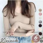 リブニット ニットセーター Vネック レデイース セーター インナー ニットソー スリム シンプル ベーシック トップス 秋 春 冬