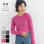 クルーネック ニット レディース 軽量 薄手 ライト リブ トップス セーター 長袖 無地 タイト やわらか メール便不可 値下げ★1089→979円 coca コカ