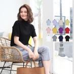 ニット トップス ニットソー レディース タートルネック ハイネック 半袖 コットン マスタード ラベンダー 無地 生地 リブ